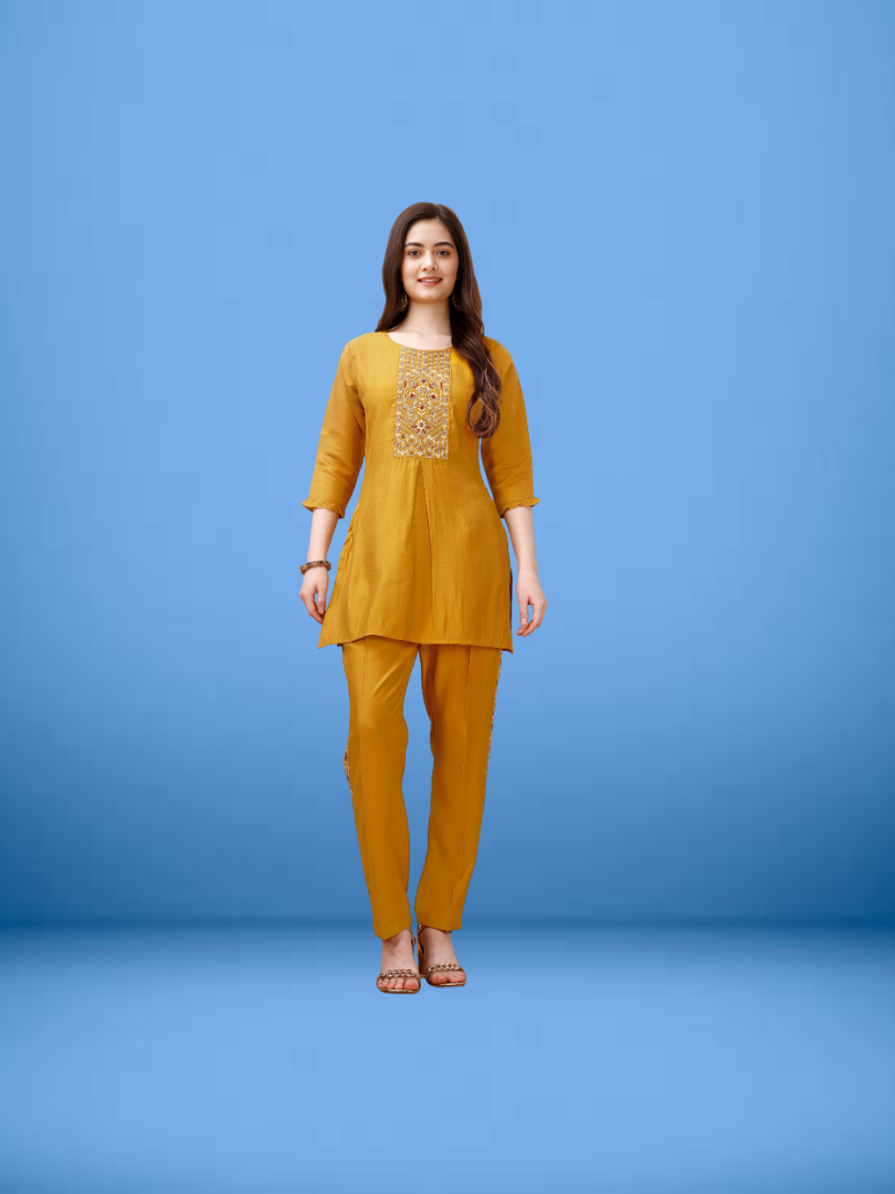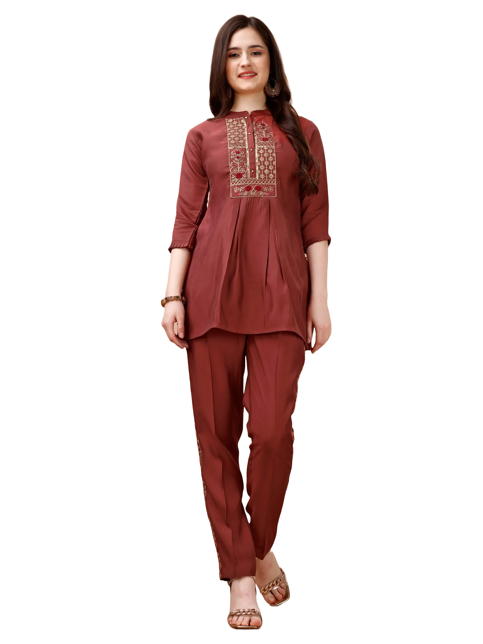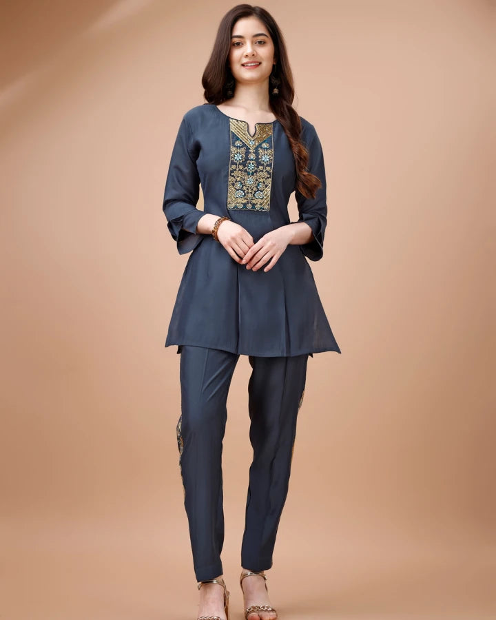 Indubalaa Deep Purple Embroidered Viscose Rayon Kurti Set